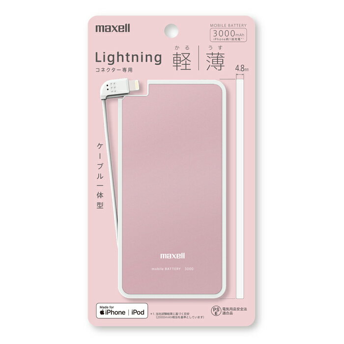 ■代金引換が指定できません■ 薄さ4.8mm ■ Lightningコネクタ専用ケーブル一体型で「Made for iPhone/iPod」取得 ■ iPhone XS、iPhone XRにも対応 ■ アルミボディ採用によりスタイリッシュなデザインを実現 ■ 約500回くり返し充電できる 商品のカラーバリエーションは全4色
