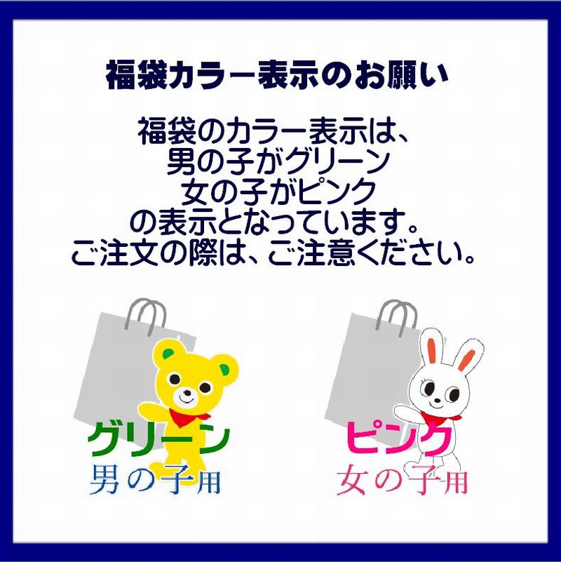 福袋のカラー表示は、男の子がグリーン・女の子がピンクの表示となっています。