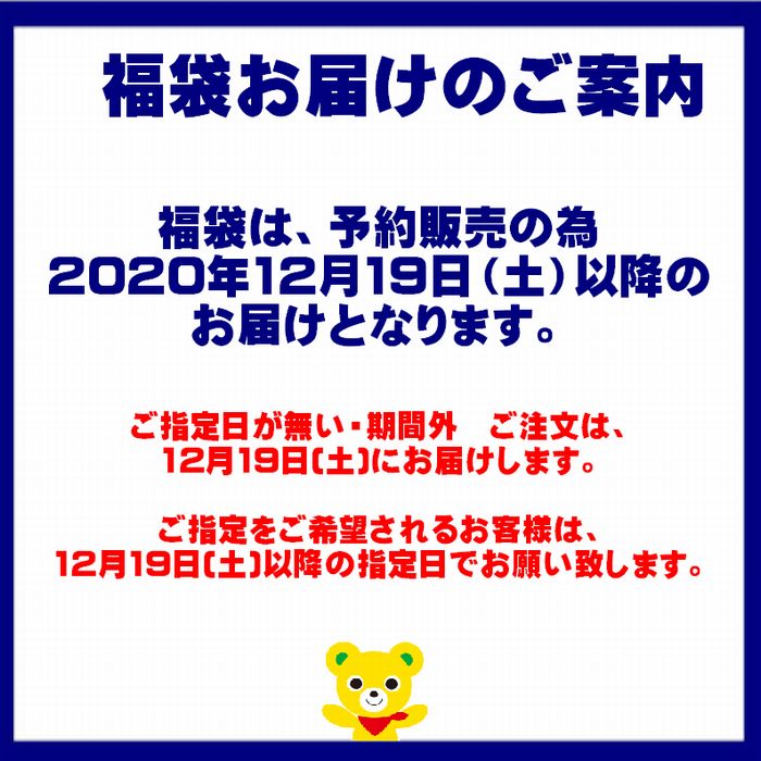 同じ金額の福袋を複数個ご予約いただいた場合、全て同じ商品となる可能性がございます。