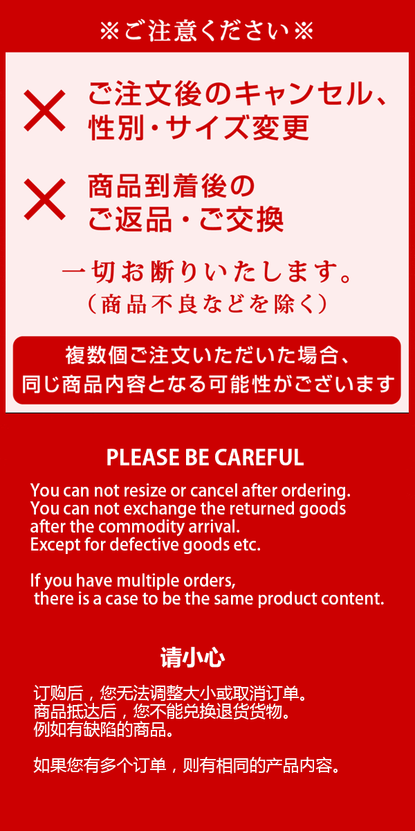 ご注意事項 ※ご注文の前に必ずご確認ください※ 福袋のご注文にあたって ●当店独自のポイントアップキャンペーンやクーポン券・フェア等のノベルティプレゼントの対象外となります ●当店発行のクーポン券の対象外となります ●ラッピング・メッセージカード・おのしカードは承ることができません ●サンキューメールのお届けにお日にちをいただく可能性がございます ●ご注文の受付は注文直後の自動配信メールにてご確認下さいませ ●特殊商品のため、割引イベントなどの対象外となります お支払いについて ●クレジットカード・後払い ●銀行振込・郵便振替・ALIPAY・PAYPALなどの前払い※3日以内のご入金をお願いします。
